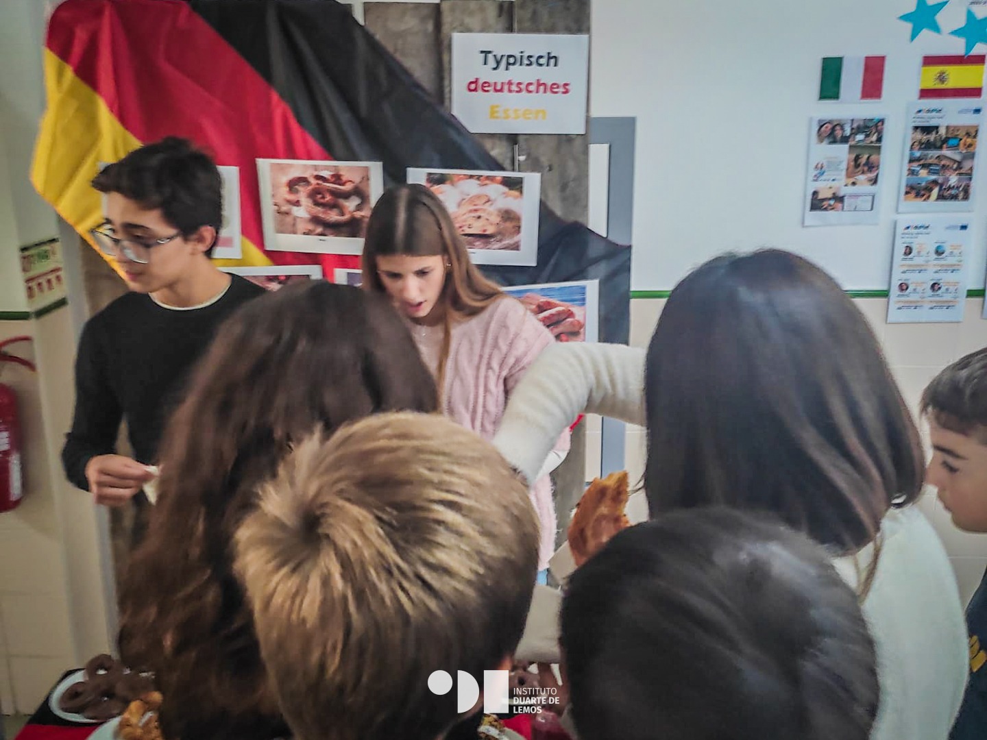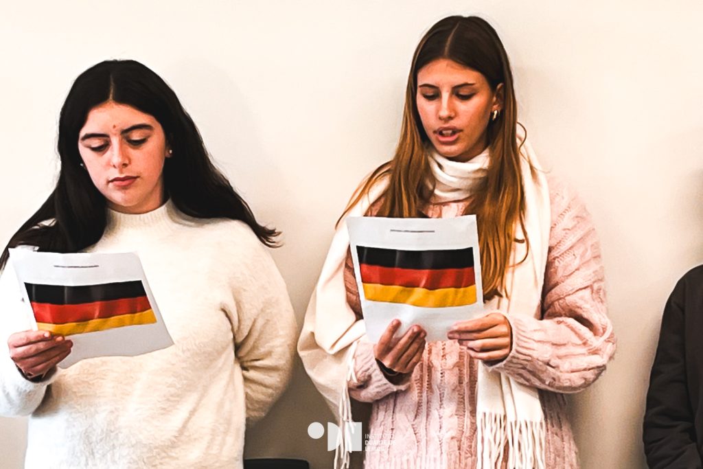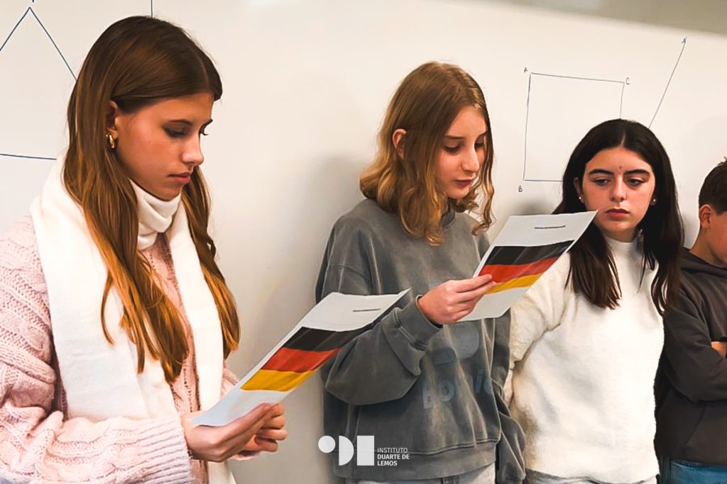 Os estudantes de língua alemã tiveram um papel ativo, visitando as salas dos 2.º e 3.º ciclos para explicar, em alemão e português, o que se estava a celebrar, promovendo a aprendizagem linguística e cultural.