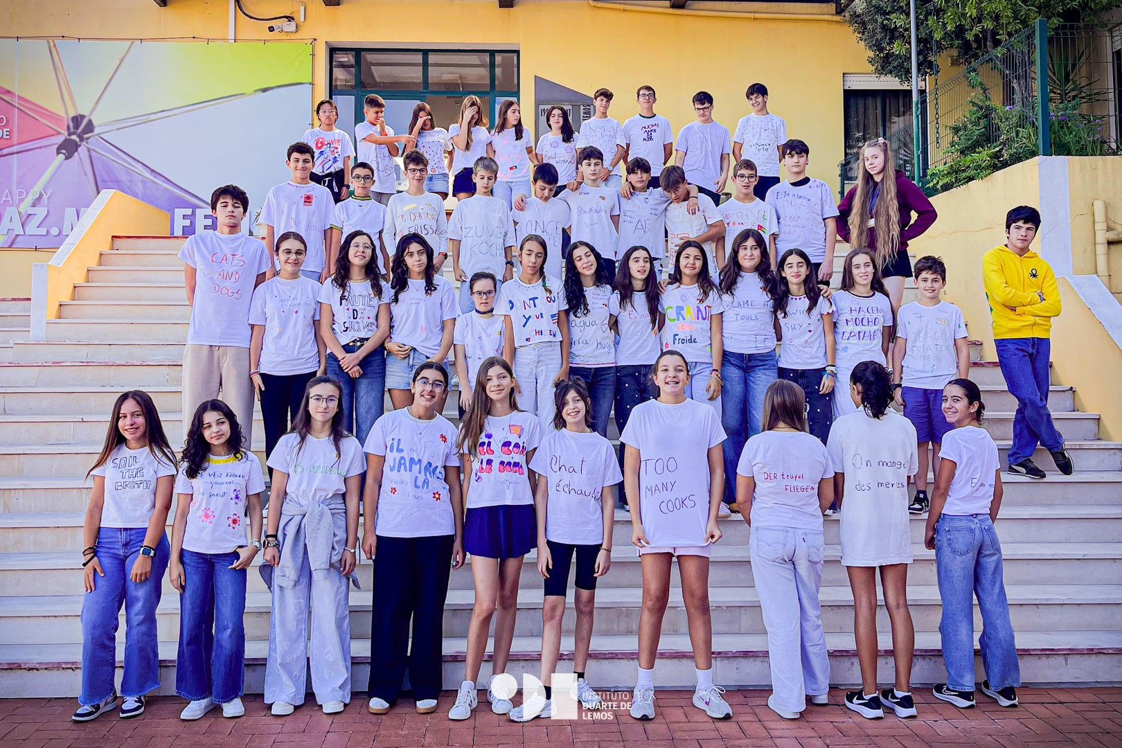 Ao longo da semana, os estudantes do 3.º ciclo envolveram-se na atividade “My Language Twin Soul” que consistiu em decorar a sua T-Shirt com uma metade de uma expressão idiomática escrita numa das línguas aprendidas no colégio (português, espanhol, alemão e francês) e fornecida pelas professoras. O dia 26 de setembro foi o culminar desta atividade, tendo os estudantes vestido a sua T-shirt e procurado a sua alma gémea para completar a expressão idiomática. Foi um momento de muita diversão e gargalhadas com algumas combinações um pouco estranhas. Após algumas dicas das professoras, todos os estudantes conseguiram encontrar a sua “Language Twin Soul”. As estudantes Mariana Marques, do 8.º ano, e a Benedita Almeida, do 9.º ano, foram o par mais rápido, pelo que foram recompensadas com alguns presentes alusivos ao Dia Europeu das Línguas. Esta nossa atividade foi registada no sítio web do Dia Europeu das Línguas e pode ser votada para o evento inovador de 2025 a partir do link (My Language Twin Soul).